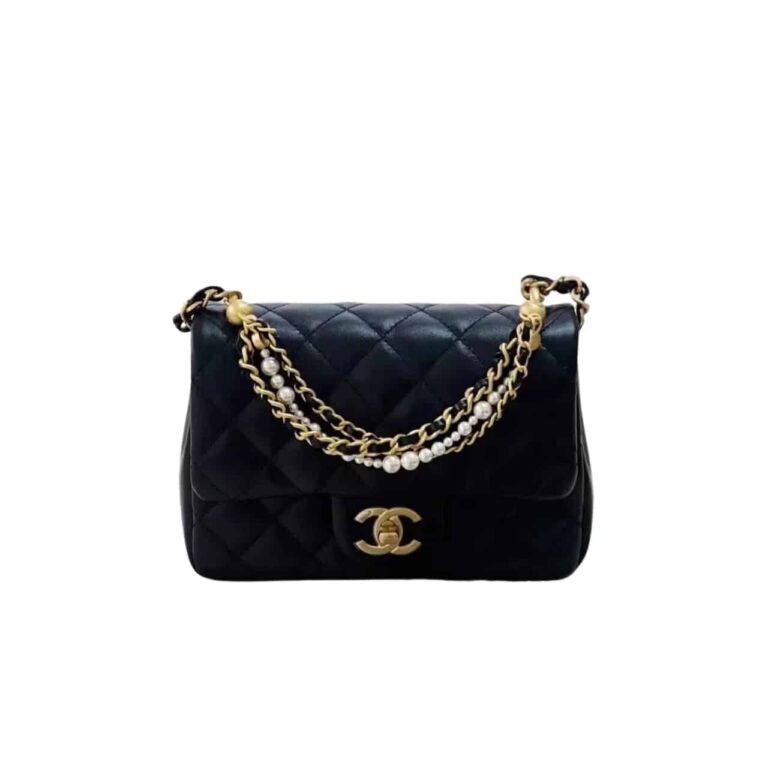 Chanel Flap Bag Gold Hardware With Chain Black 17Cm