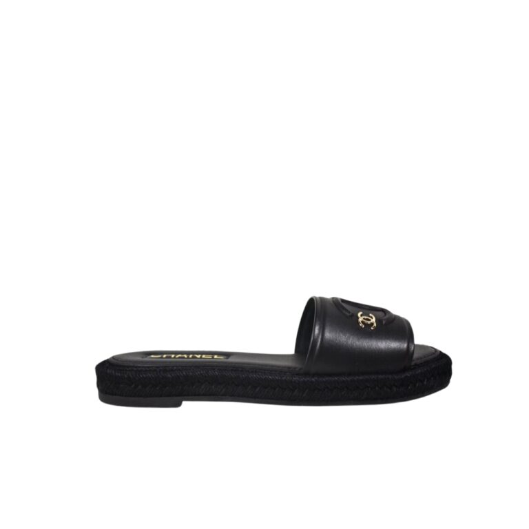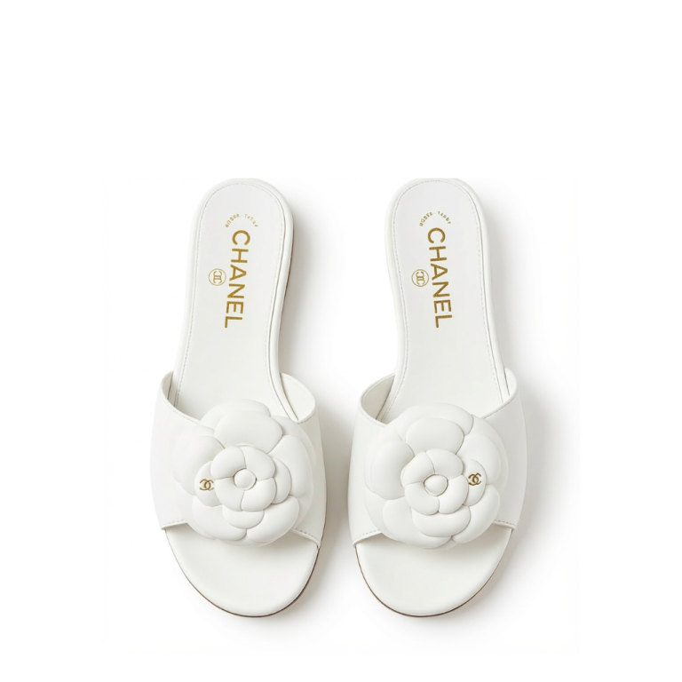 Chanel Black Quilted Leather With White Camellia Cc Logo Sandals G45258 X01000 94305