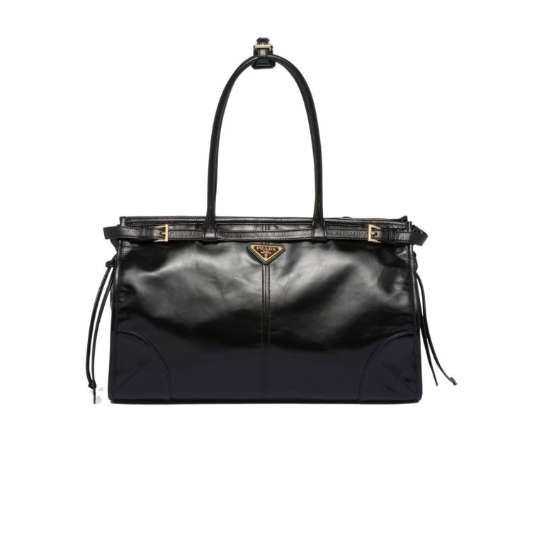 Prada Nylon Tote With Embroidered Logo Black 32Cm