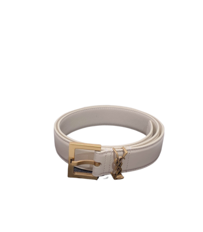 Saint Laurent Adjustable Square Buckle Belt White And Gold