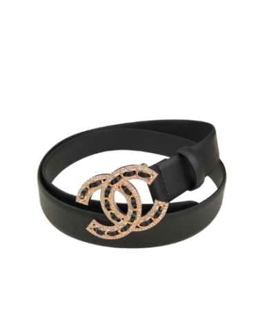 Chanel Glass Pearls Crystal Gold Black Belt 28mm