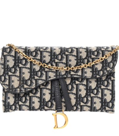 Christian Dior Oblique Saddle Chain Long Wallet Blue