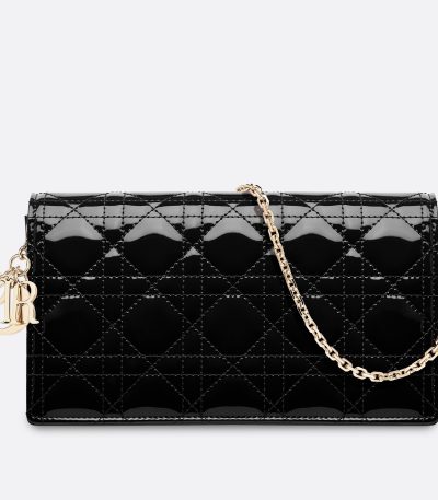 Dior Lady Dior Clutch With Chain In Black Patent