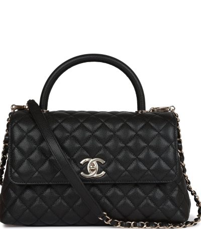Small Coco Handle Flap Bag Black Caviar Light Gold Hardware