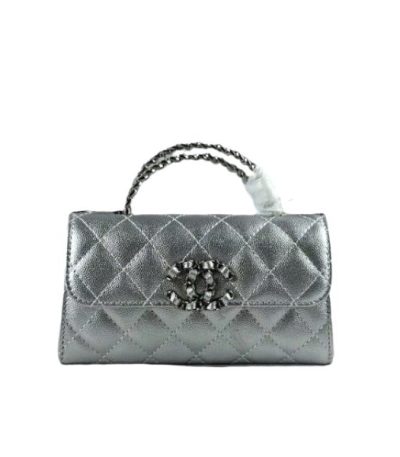 Chanel 23P Clutch With Chain Bag With Top Handle Silver 19Cm