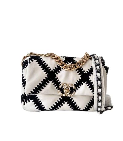 Chanel 19 Large Stitch Crossbody Bag White 24Cm