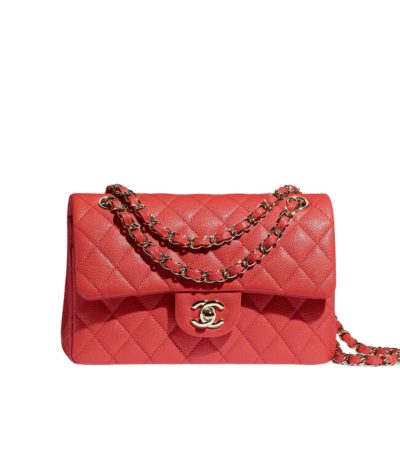 Small Classic Double Flap Red Caviar Light Gold Hardware