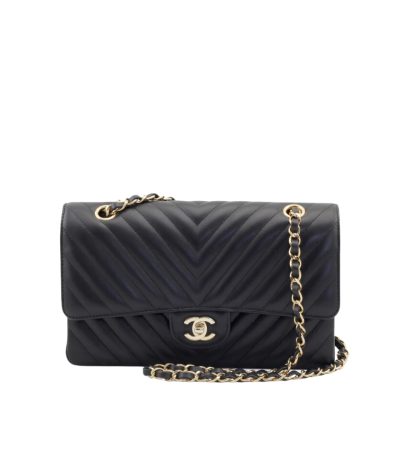 Chanel Black Chevron Medium Flap Bag 25Cm