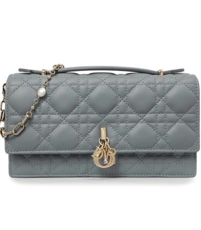 Christian Dior Calfskin Cannage Caro Pouch With Chain Gray