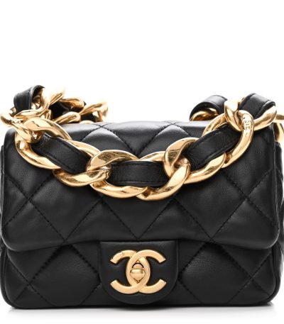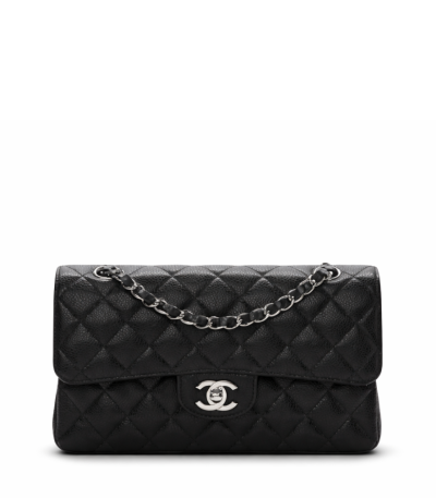 Black Quilted Caviar Small Double Flap Silver Hardware