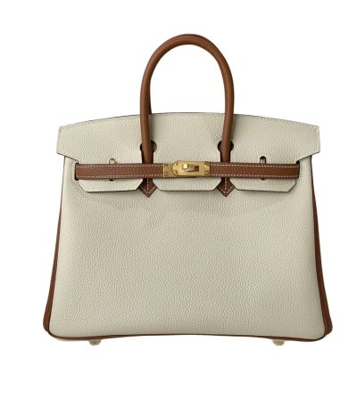 HERMES BIRKIN 25 TOGO BRUSHED LEATHER GOLD HARDWARE BEIGE GREY 30CM