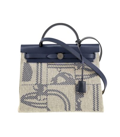 HERMES HERBAG 31 BRIDES DE GALA AND BLUE INDIGO BLUE ENAMEL 31CM