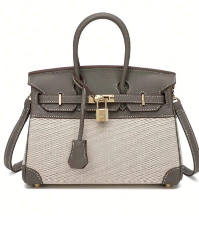 HERMES BIRKIN 25 BI-MATERIAL GOLD TONED HARDWARE GREY 25CM