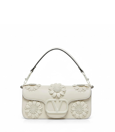 Valentino Garavani Loco Flower Applique Shoulder Bag White 26Cm