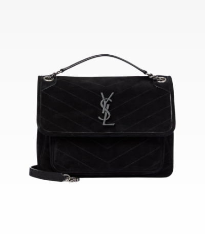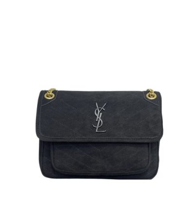 Saint Laurent Niki Medium Quilted Suede Shoulder Bag Black