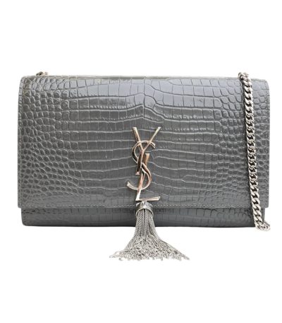 Saint Laurent Kate Monogram Shoulder Bag Crocodile Gray 20Cm