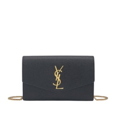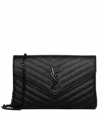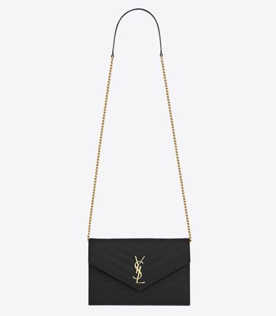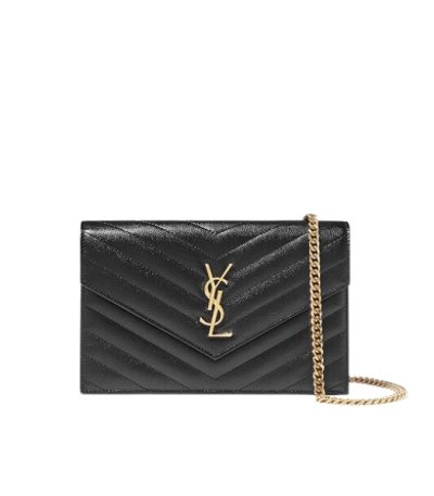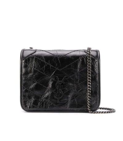 Saint Laurent Niki Vintage Leather Chain Wallet Black 19Cm