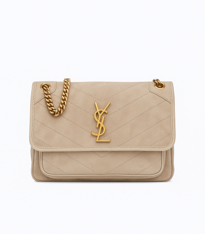 Saint Laurent Niki Vintage Leather Chain Wallet Beige 19Cm