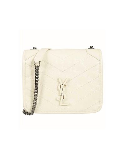 Saint Laurent Niki Vintage Leather Chain Wallet Cream 19Cm
