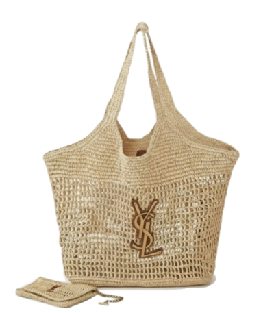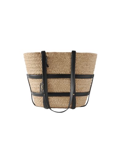 Saint Laurent Medium Panier Harness Raffia Tote Beige 17Cm