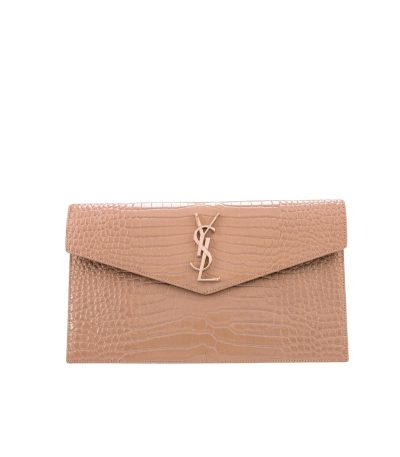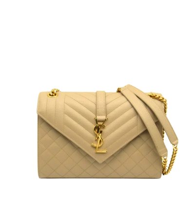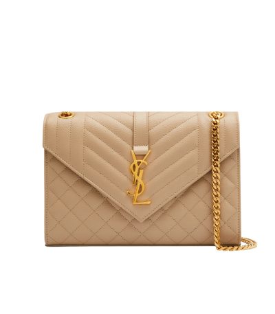Saint Laurent Envelope Matelasse Grain De Poudre Dark Beige 24Cm