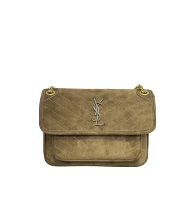 Saint Laurent Niki Baby Chain Bag In Suede Brown 28cm 6237483