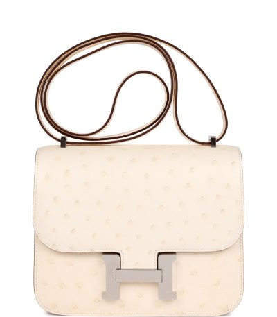 H Handbags Constance 18 Nata Ostrich Palladium Hardware