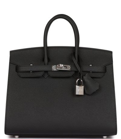 H Handbags Birkin Sellier 25 Black Epsom Palladium Hardware