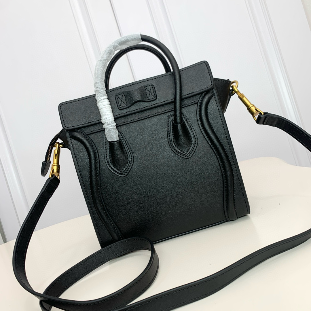 Celine Nano Luggage Bag In Drummed Calfskin Black 189243Dru38No