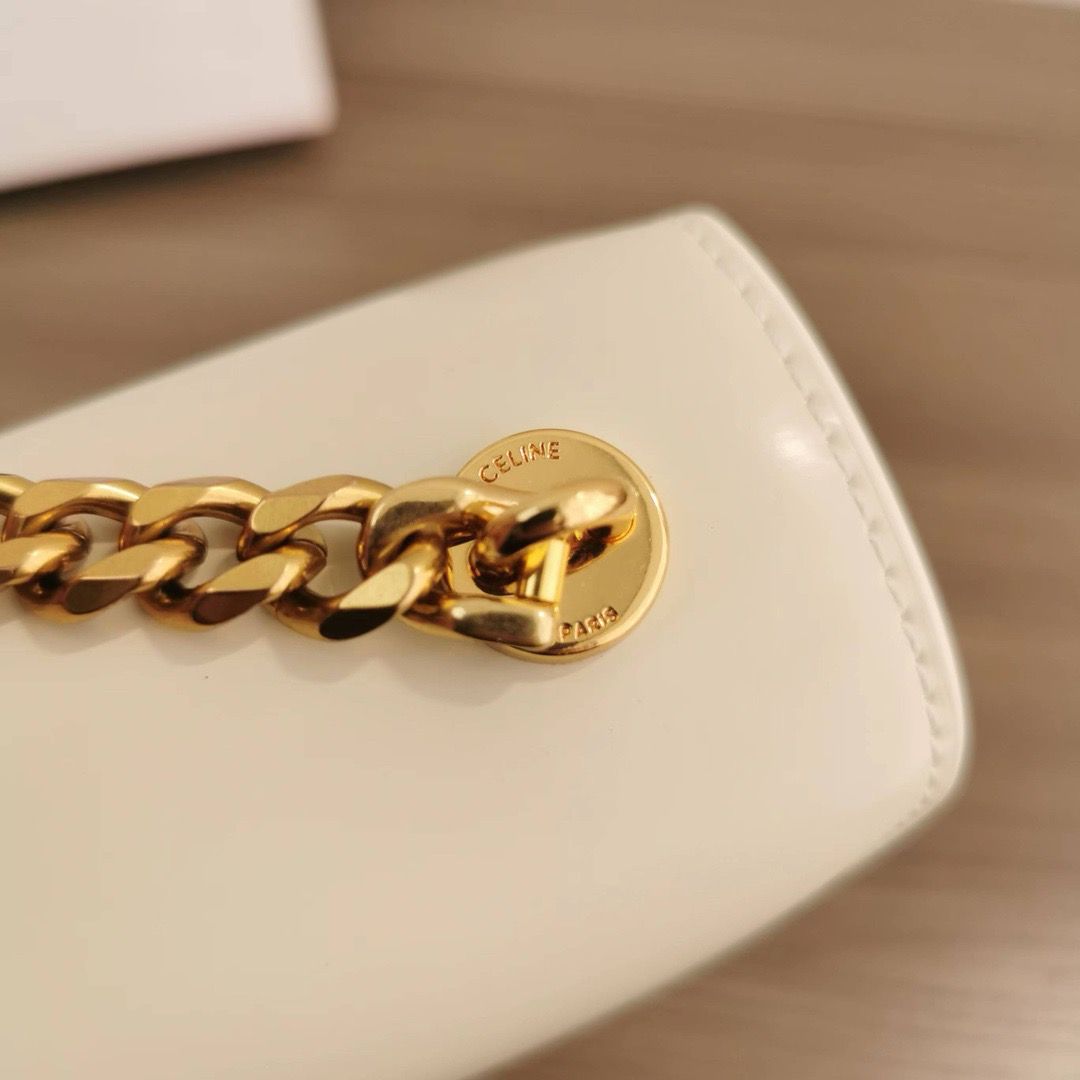 Celine Teen Chain Besace Triomphe In Shiny Calfskin White