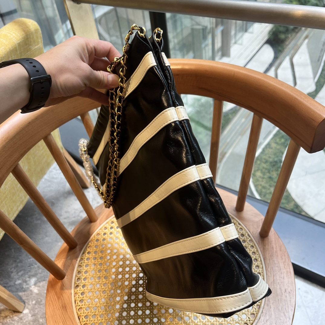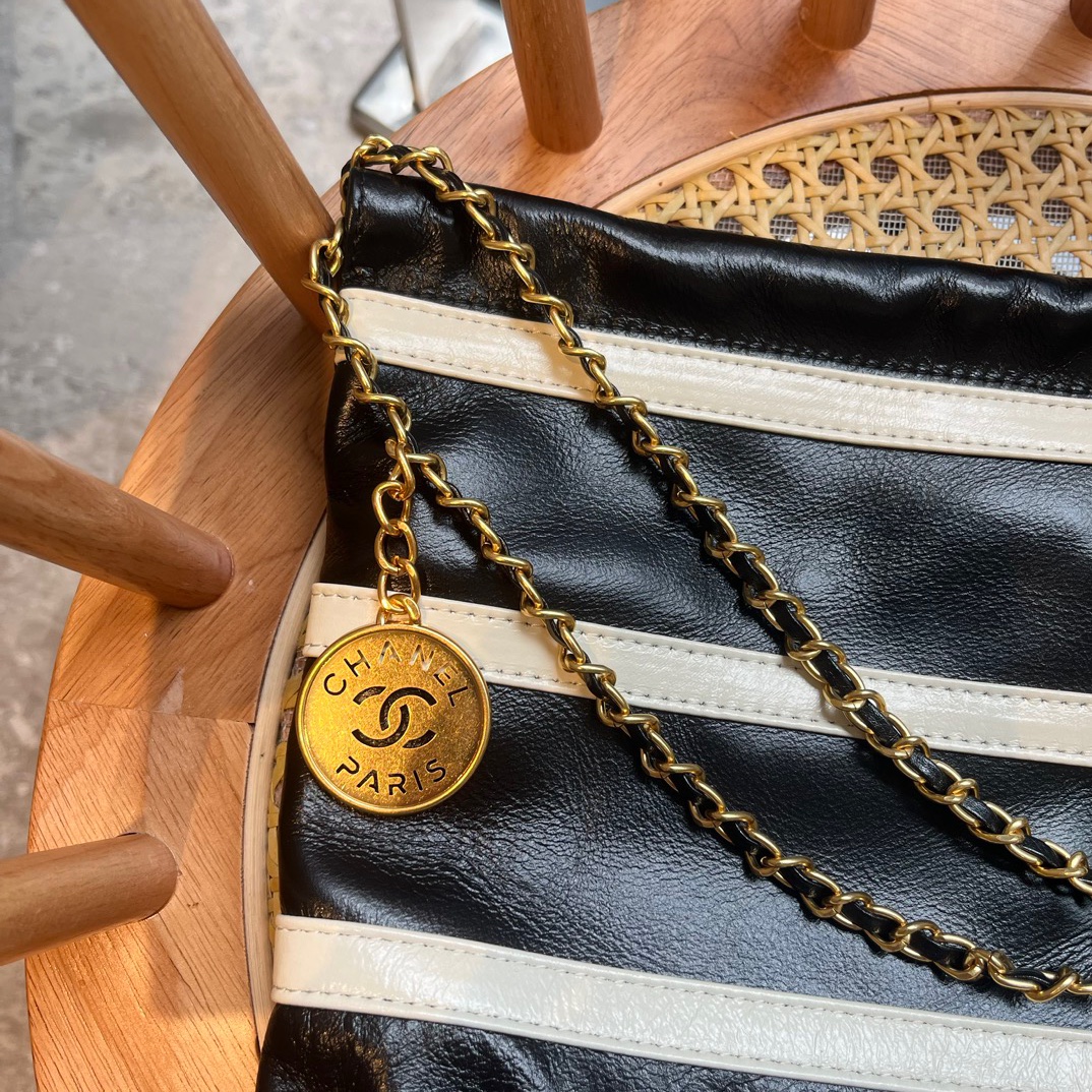 Chanel 22 Small Handbag Black White Gold Tone Metal 30Cm As3260