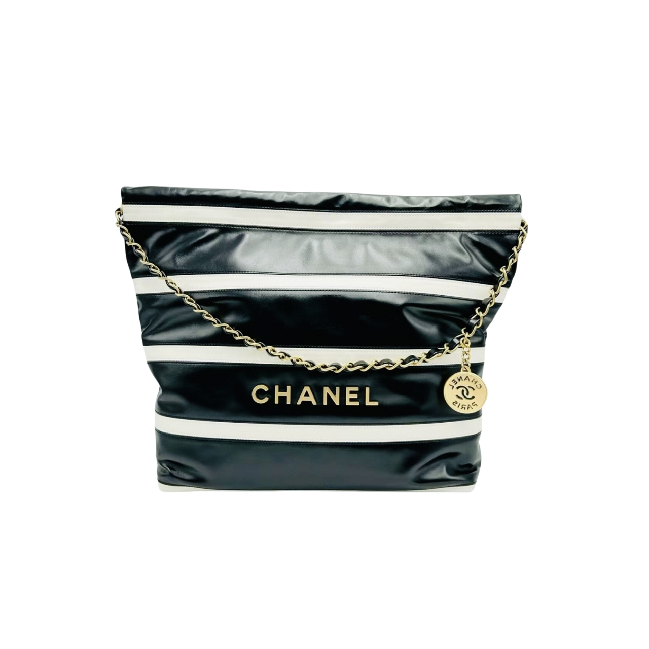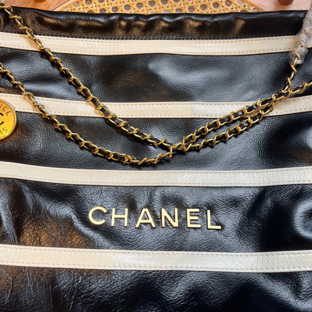 Be the first to review “Chanel 22 Small Handbag Black White Gold Tone Metal 30Cm As3260”