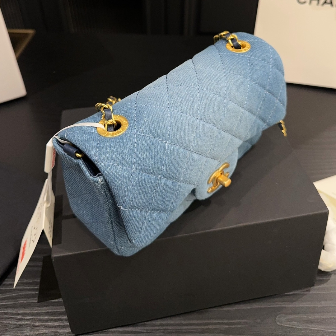 Chanel Classic Handbag Washed Denim And Gold Tone Metal Blue 19Cm A01112 B16747 Nx158