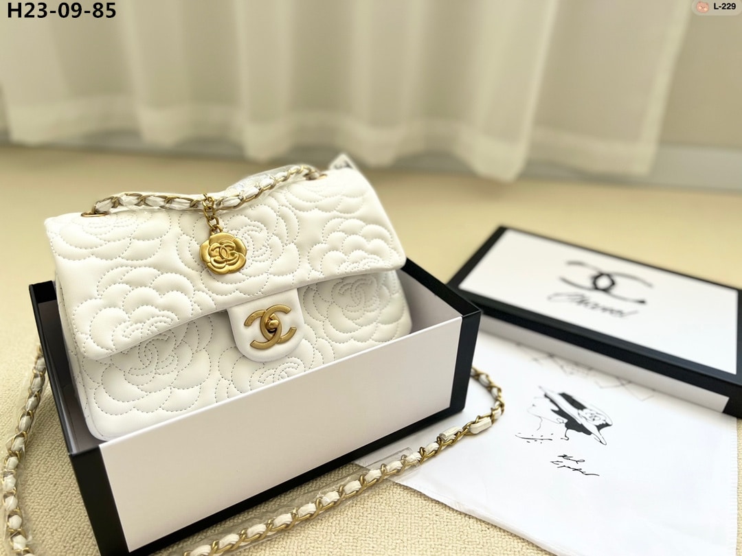 Chanel Flap Bag With Camellia Flower Chain White 26Cm