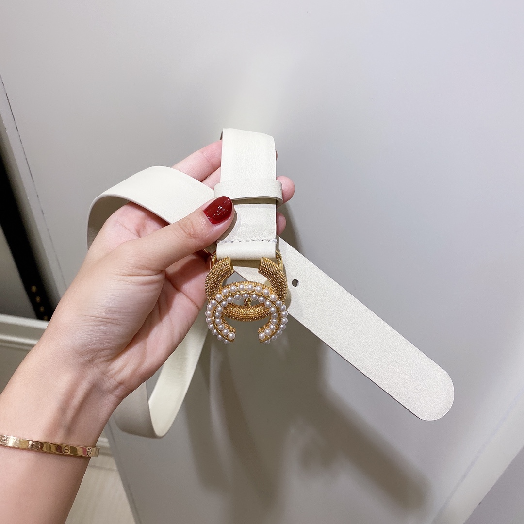 Chanel Leather Belt with CC Buckle in Metal White 3cm