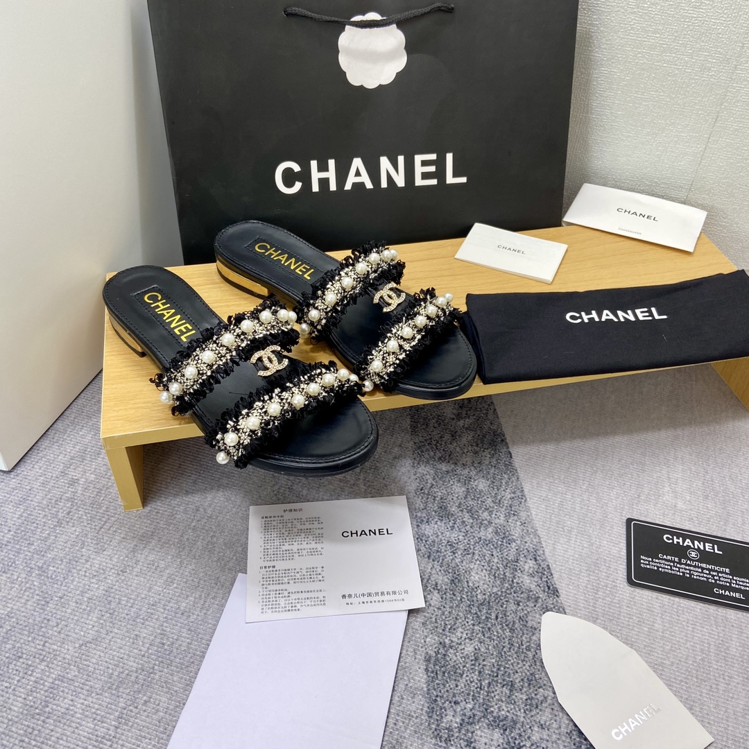 Be the first to review “Chanel Mule Slippers Pearl Tweed Black”