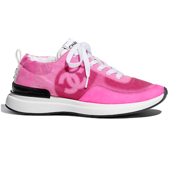 Chanel Neon Denim Lace Up Low Top Trainer Sneaker Pink G37494 Y55286 0K774