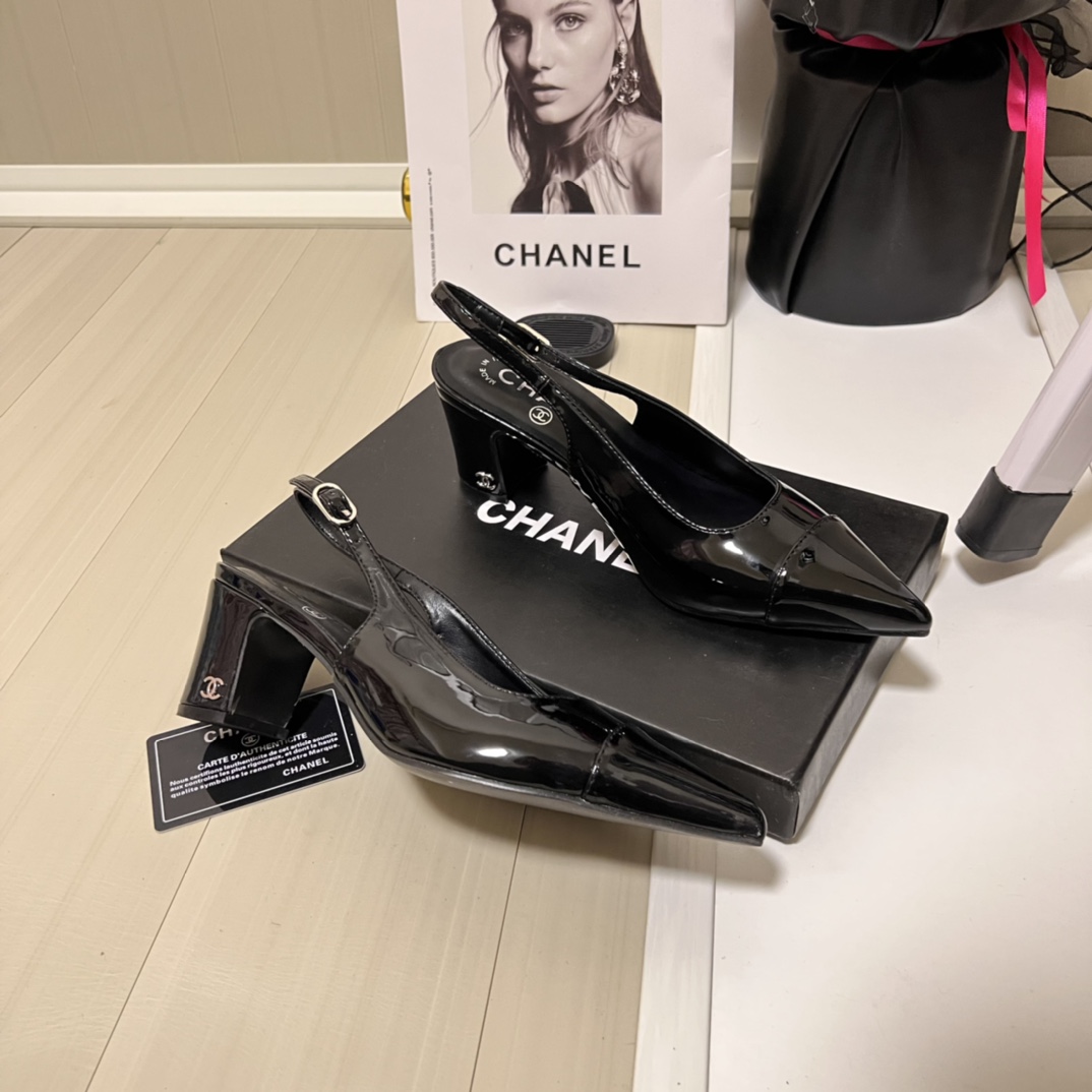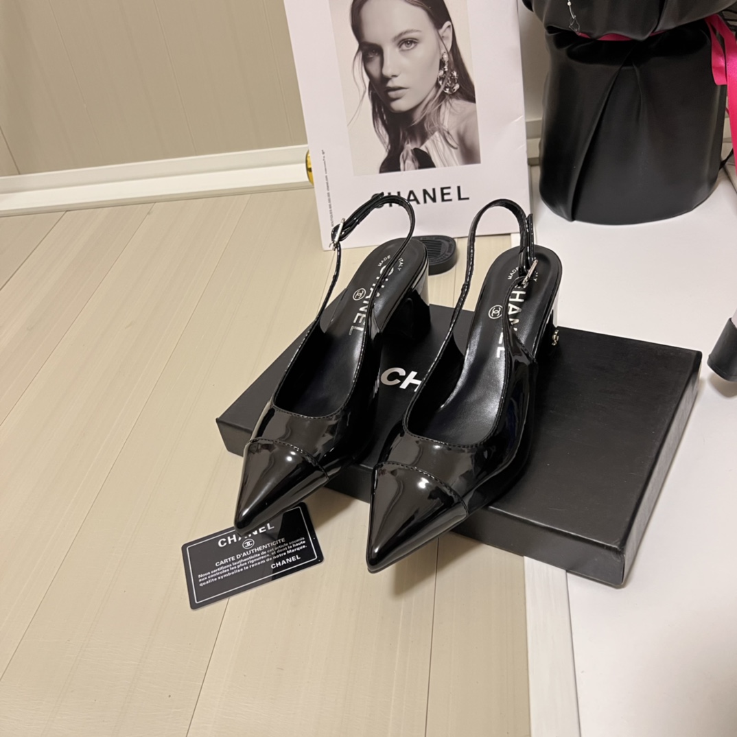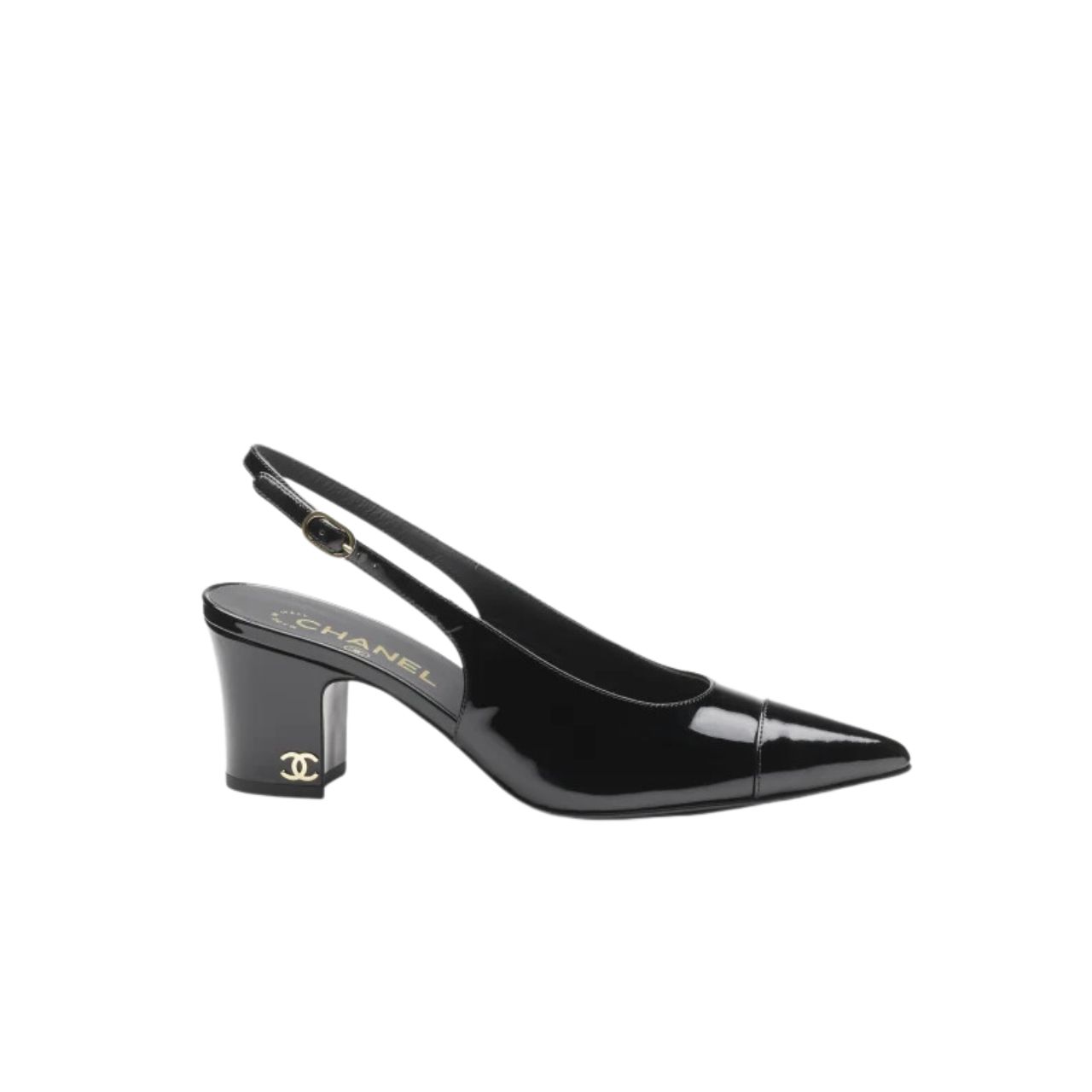 Chanel Slingbacks Heels Patent Calfskin In Black G45251 B14524 94305