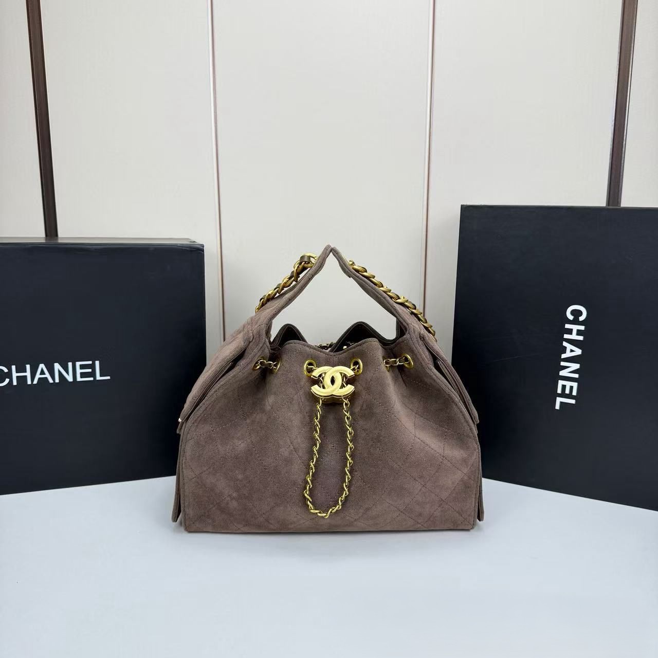 Chanel Small 25 Hobo Bag Brown Suede Antique Gold Hardware