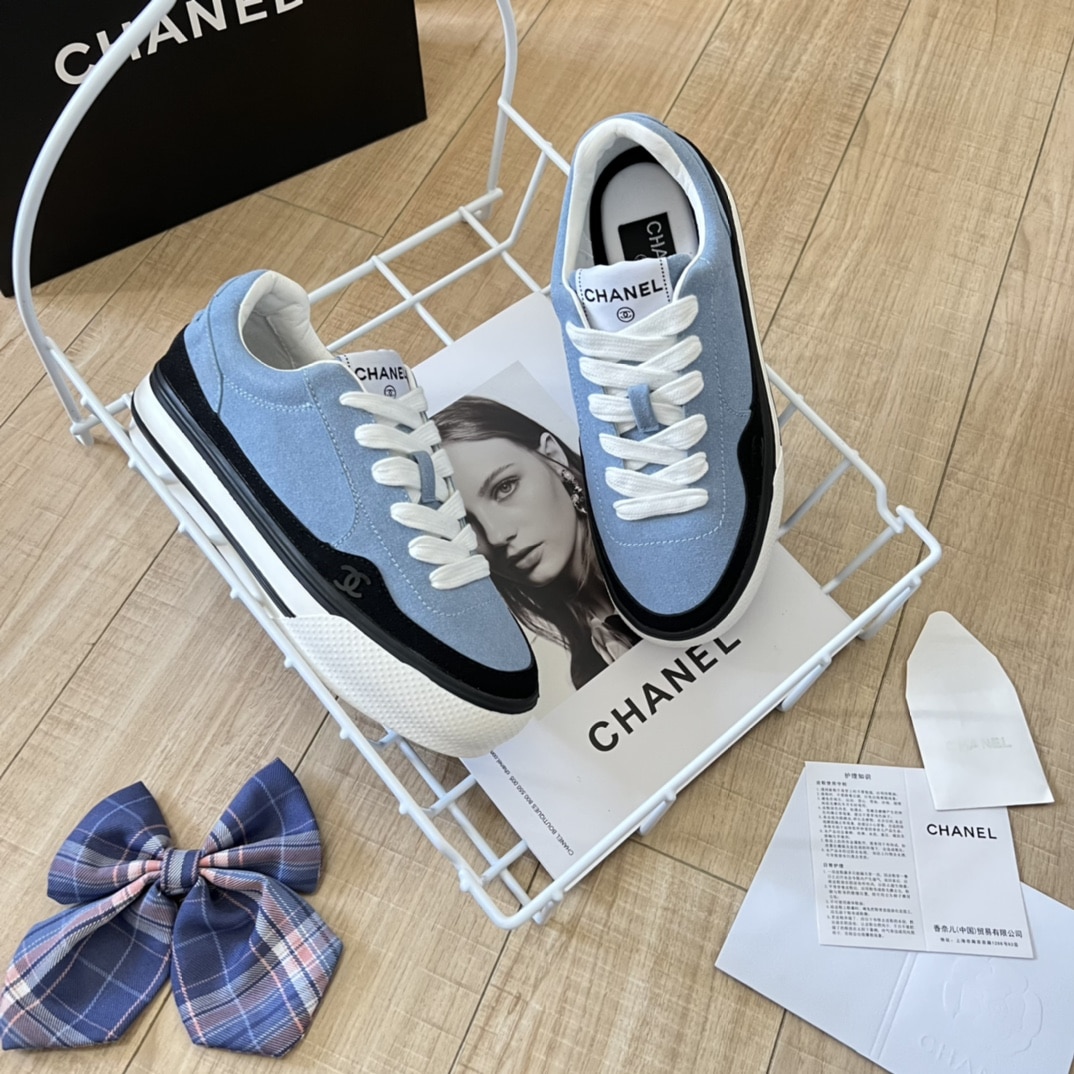 Chanel Suede Leather Runners Blue