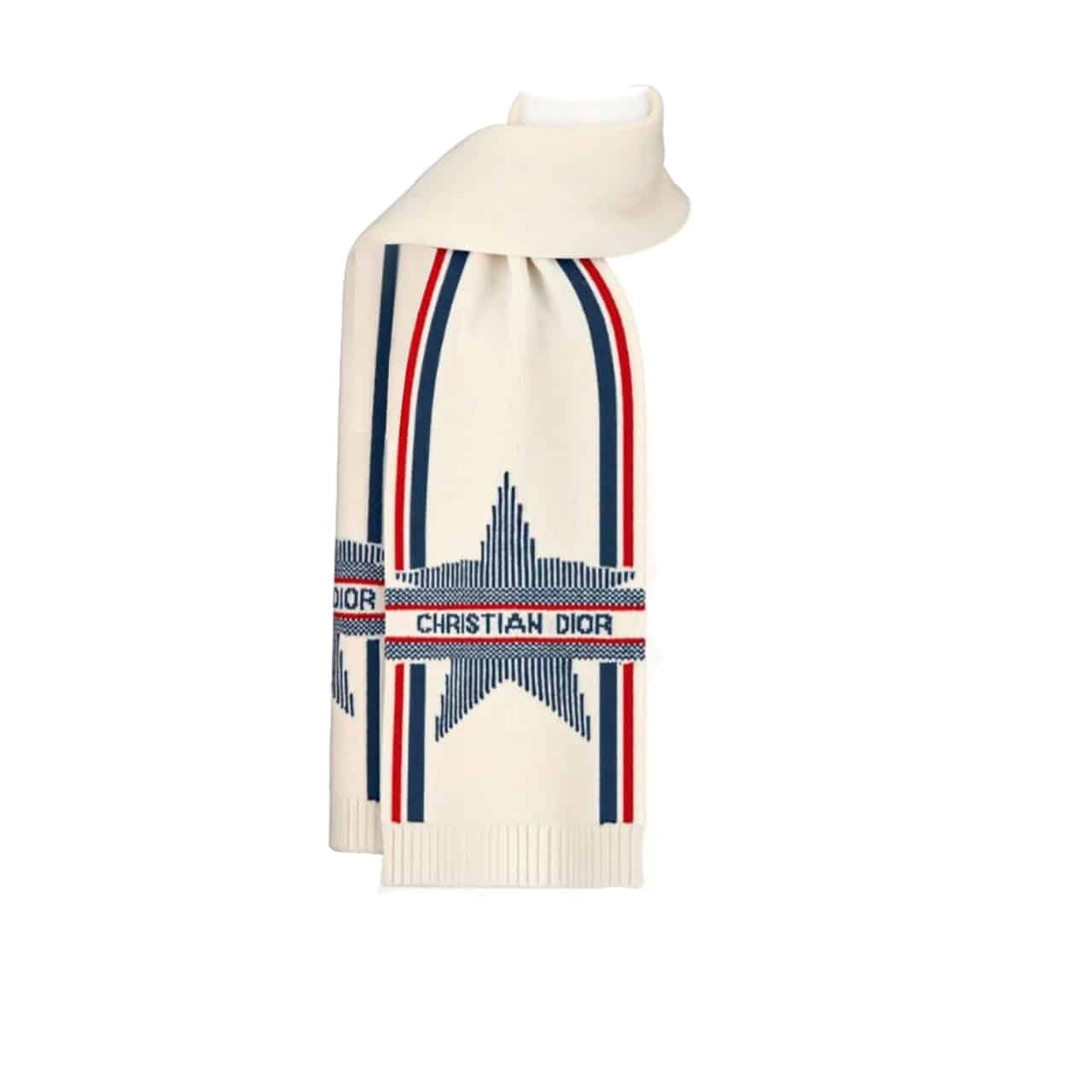 Dior Dioralps Scarf White Three Tone Wool And Cashmere