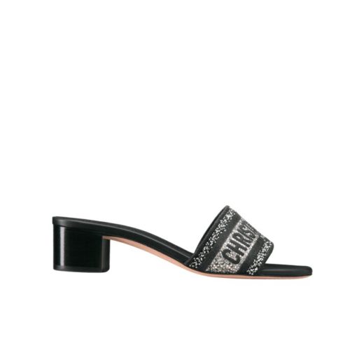 Dior Dway Heeled Slide Embroided Cotton Black