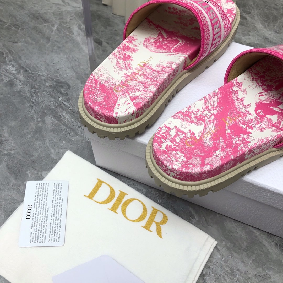 Dior Dway Toile De Jouy Embroidered Slipper Pink