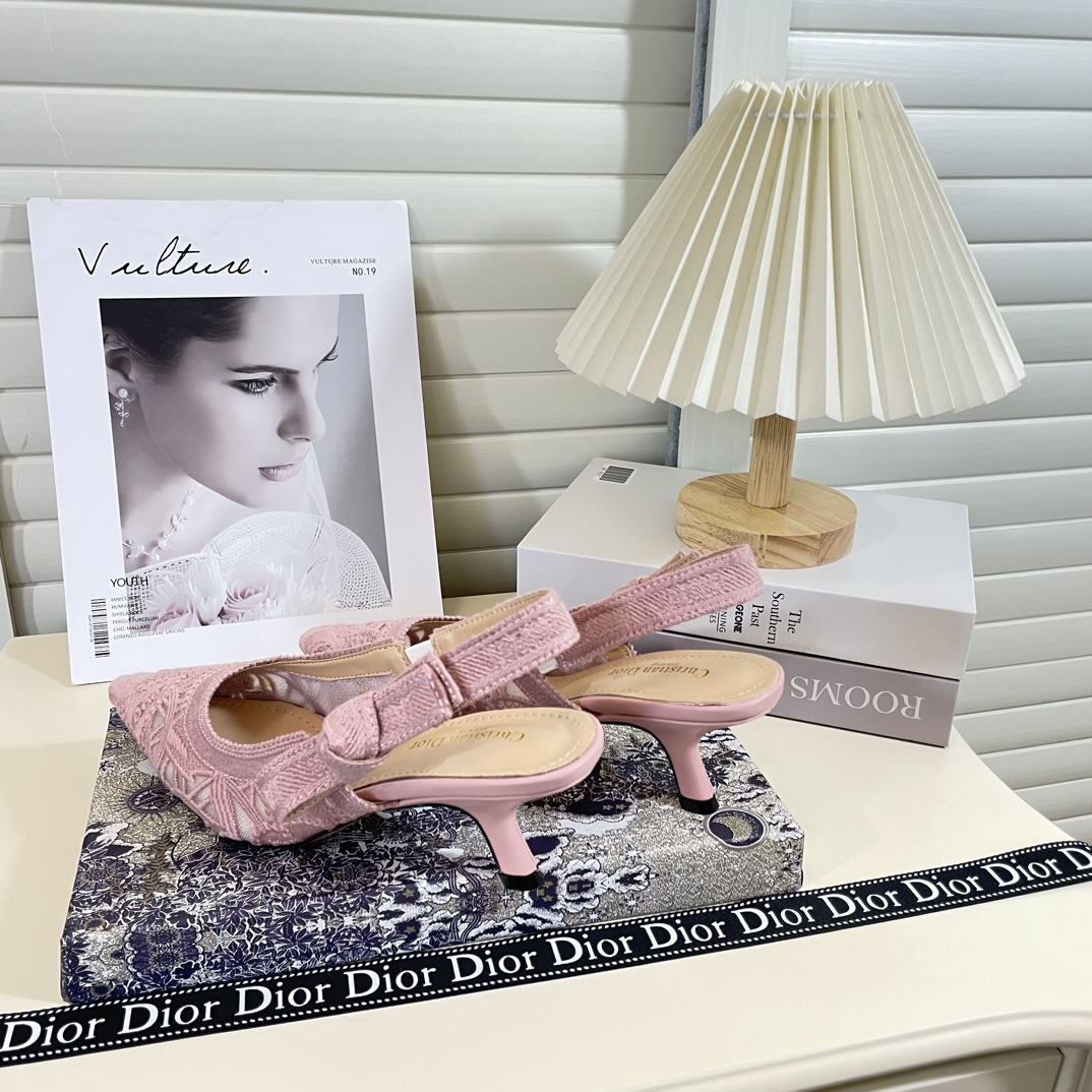 Dior J’Adior Slingback Pump Transparent Mesh Embroidered With Butterfly Motif Pink