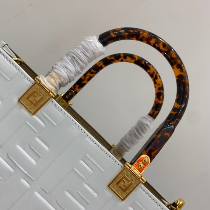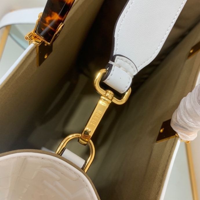 Fendi Sunshine Medium White Leather Shopper 35Cm 8Bh386Amcvf0Qvl