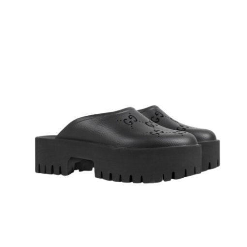 Gucci Men’S Slip On Sandal Black Gg Rubber 655517 Jfb00 1000