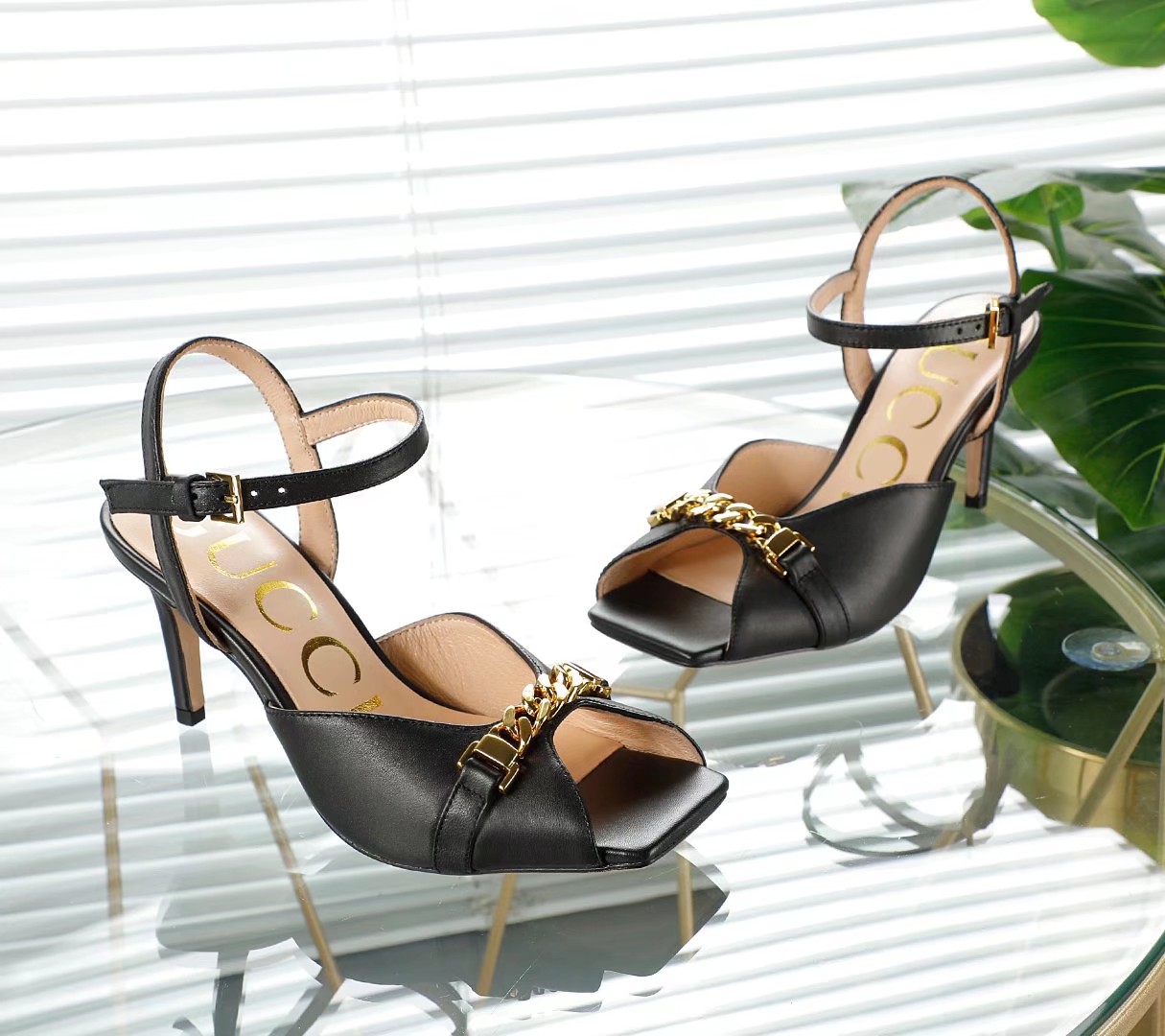 Be the first to review “Gucci Metal Chain Stiletto Heels Flip Flop Fish Mouth Sandals Black”
