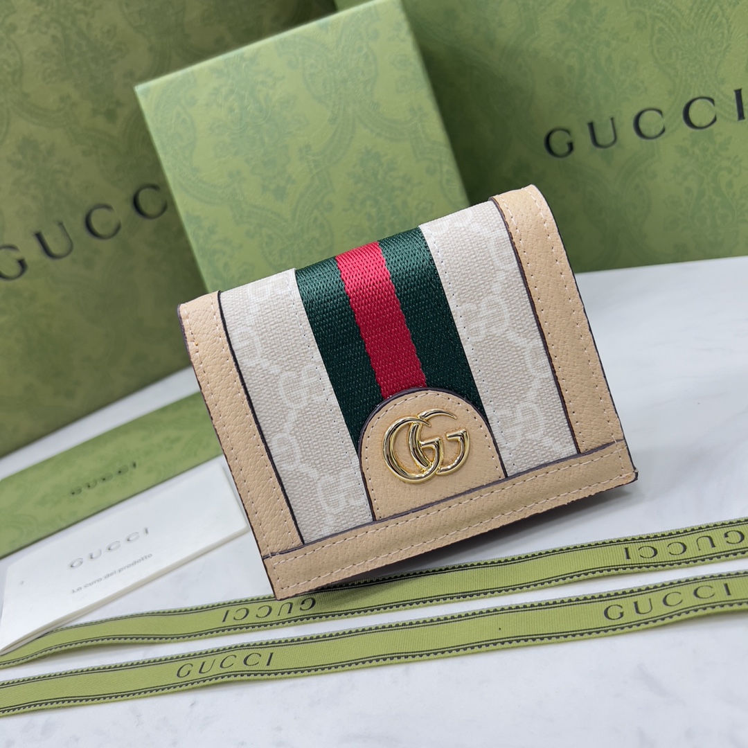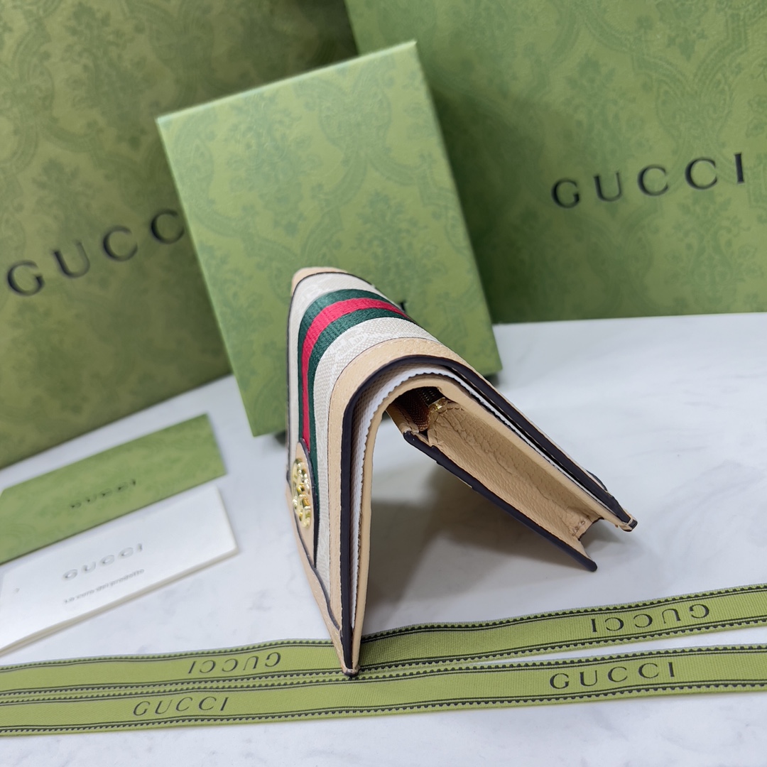 Gucci Ophidia Gg Card Case Wallet Beige And White 523155 Uulag 9682