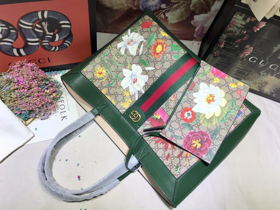 Gucci Ophidia Gg Flora Medium Tote Green 44Cm