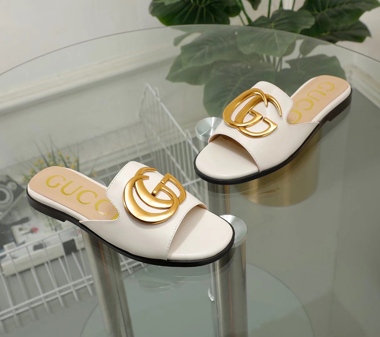 Be the first to review “Gucci Princetown Gg Slippers Leather White”